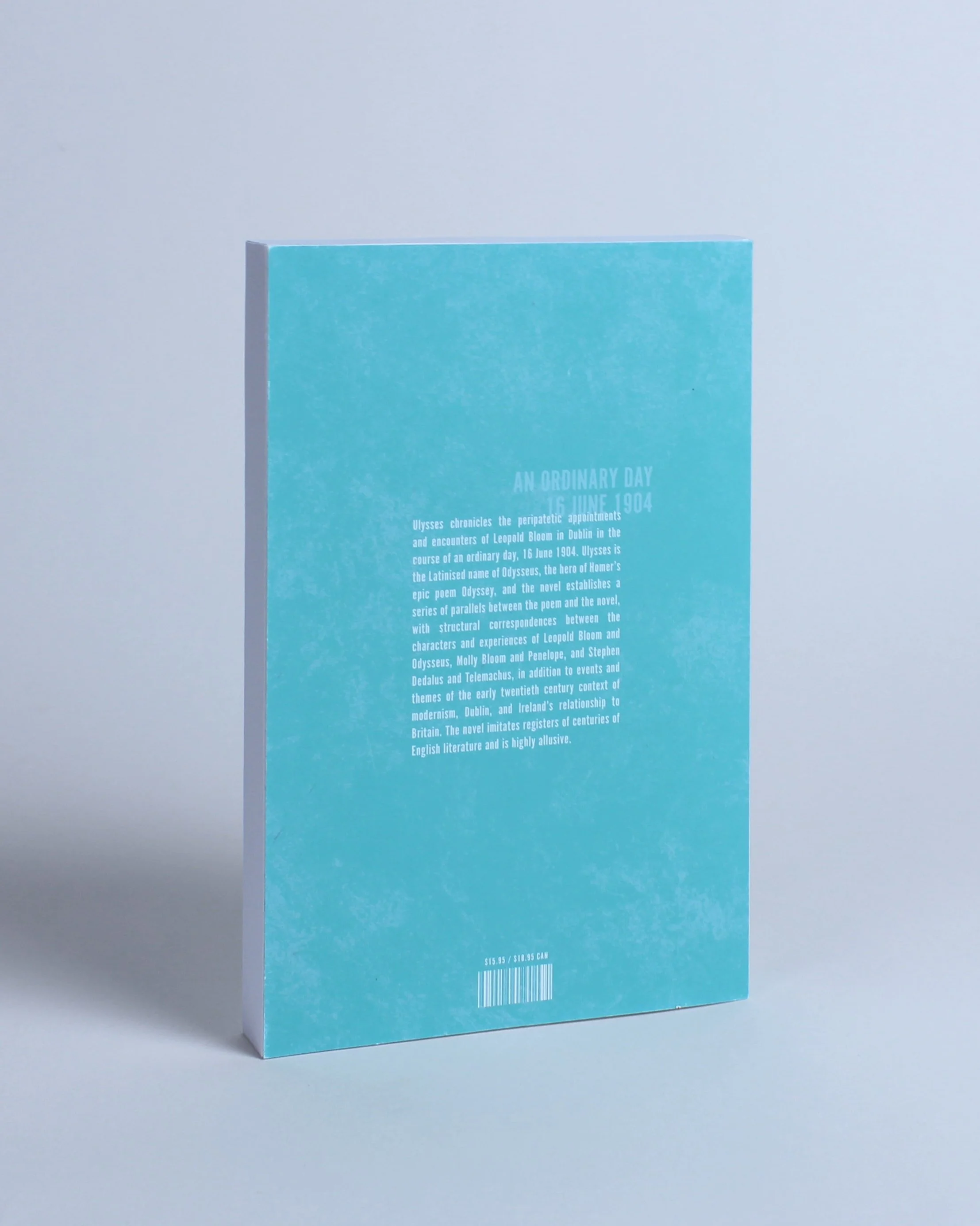 Book cover design for James Joyce’s novel “Ulysses.” The timeline of this story lasts for just one day. By using a simple, reversible composition, this design emphasizes the passage of time from day to night.